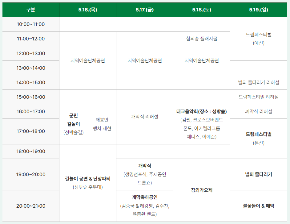 - 축제 기간 : 2024년 5월 16일 (목)부터 5월 19일 (일)