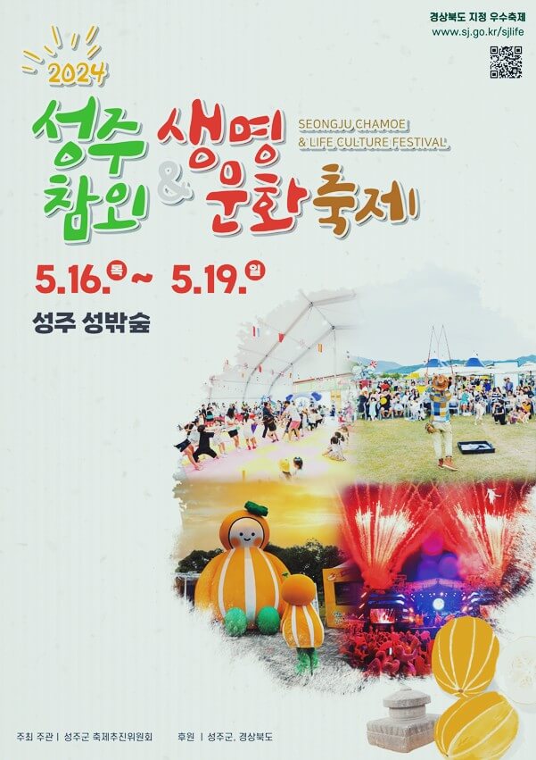 2024년 성주 참외축제는 "성주 참외&생명문화축제"라는 이름으로 경상북도 성주군에서 열리는 축제입니다. 지역의 상징인 참외를 중심으로 하여 다양한 문화 행사와 자연 체험 활동을 제공합니다. 성주 참외축제는 성주의 자연과 문화를 조화롭게 경험할 수 있는 기회를 제공하고, 모든 연령대의 방문객에게 즐거운 시간을 제공하기 위해서 노력했습니다. 2024 성주 참외 축제의 일정과 주차정보, 초대가수 정보를 공유해 드렸으니 방문하셔서 즐거운 시간 보내셨으면 좋겠습니다.