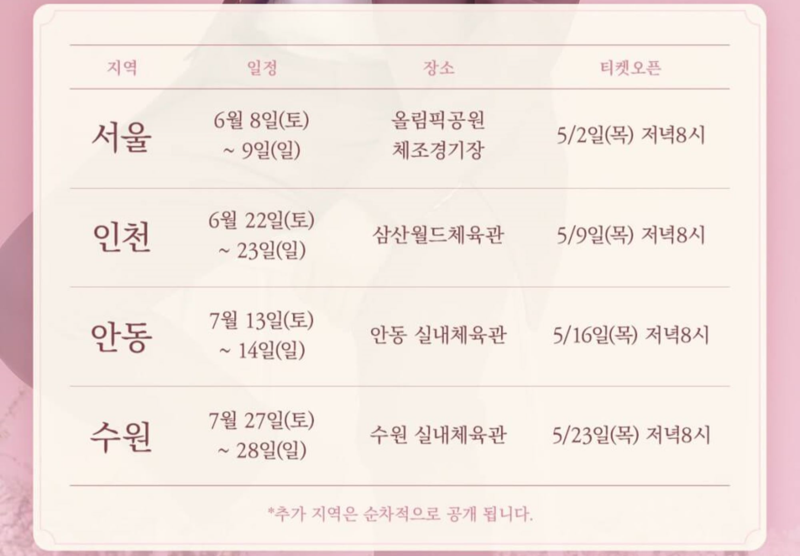 - 티켓 예매 시에는 공식 예매처를 이용하거나 인증된 온라인 플랫폼을 이용해 주세요. 불법 거래나 중개로 발생하는 피해는 본인 책임이니 주의해 주세요.