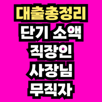 단기 소액 직장인 사장님 무직자 모두 이용하실 수 있는 대출상품들을 정리한 글입니다. 조건에 맞는 상품을 빠르게 살펴보세요.